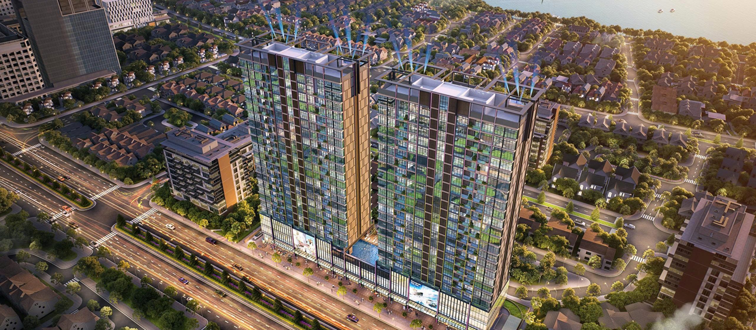 2 tòa tháp cao 23 tầng.Hầm và 4 tầng đế liên thông